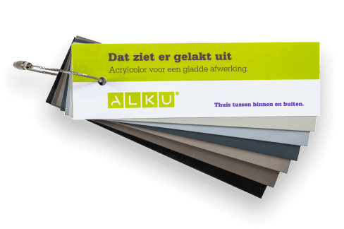 Voor wie graag wat meer kleur aanbrengt, is er een ruime keuze in zowel kleuren als afwerking. Denk aan gladde, matte of metallic finish. En aan houtnerf, houtpatroon, RealWood® of aluminium-look. Alle veelgekozen kleuren en structuren hebben we samengevoegd in de ALKU selectie. Zit jouw voorkeur er toch niet tussen? Dan kunnen onze adviseurs daar vast een mouw aan passen. Er zijn namelijk nog veel meer kleurmogelijkheden dan alleen de ALKU selectie.